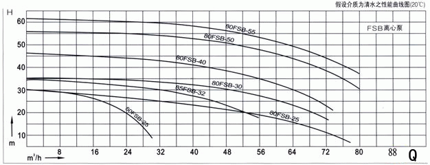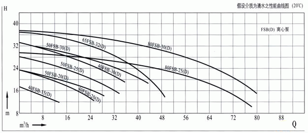 FSB型耐腐蝕離心泵性能曲線圖: