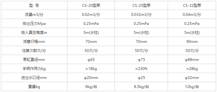 CS型手搖油泵性能參數(shù)表: