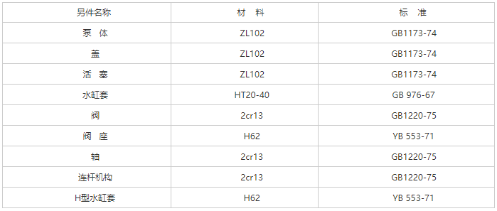 CS型手搖油泵零部件材料: