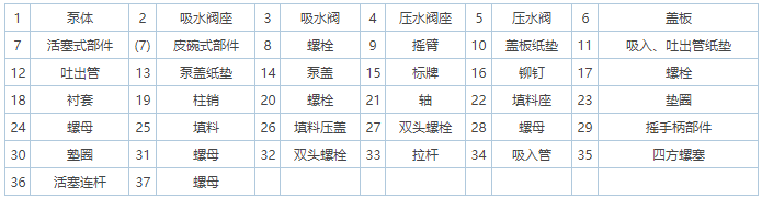 S、SH-25、38型手搖泵零件名稱: