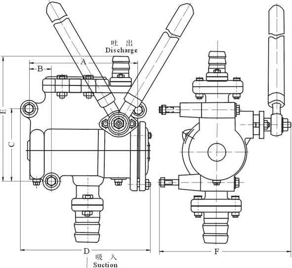 S、SH-25、38型手搖泵外形結(jié)構(gòu)圖: