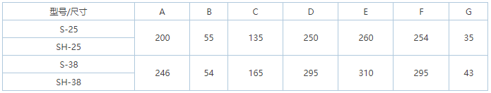 S、SH-25、38型手搖泵連接尺寸表: