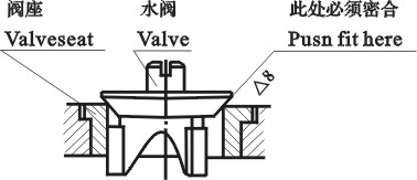 每臺水搖泵有四只水閥,即吸水閥及壓水閥各二只,都裝在泵體上,只要拆除蓋板螺母,就可取出(參看水閥示圖)檢查水閥的關(guān)鍵問題,須檢查閥與閥座是否密合,即使用一段時(shí)間后,可能已被磨損腐蝕不平,而造成漏水,因此在檢修時(shí)須將閥拆開檢查,倘已發(fā)現(xiàn)不平,則須用研磨砂研磨,閥與閥座接合處光潔度為△8。