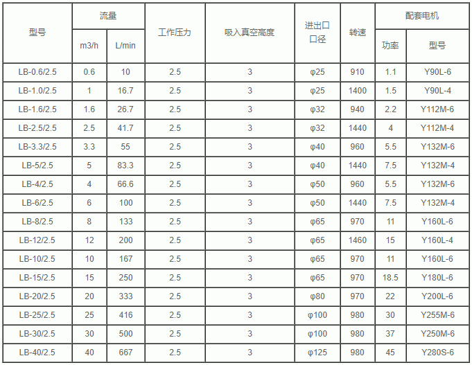 LB冷凍機(jī)齒輪泵性能參數(shù)表: