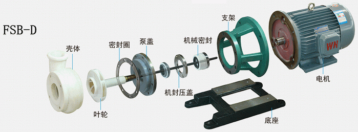 FSB-D型氟塑料合金離心泵結(jié)構(gòu)特點: