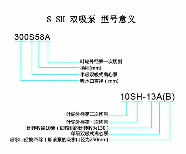 S、SH型臥式雙吸離心泵型號(hào)說明: