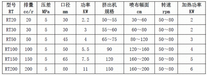 RT型熔體泵性能參數(shù)表: