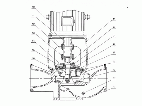 ISGB型便拆立式管道離心泵零件組裝圖: