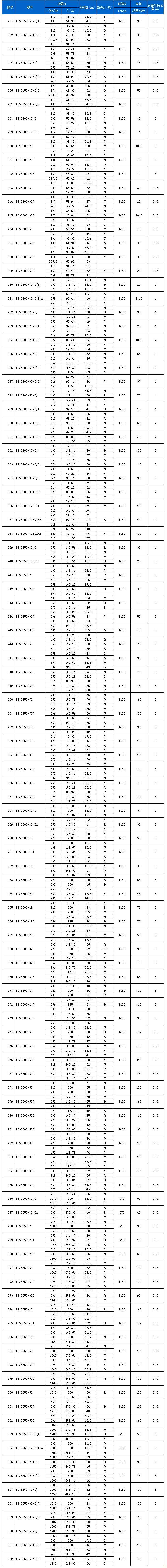 ISGB型便拆立式管道離心泵性能參數(shù)表: