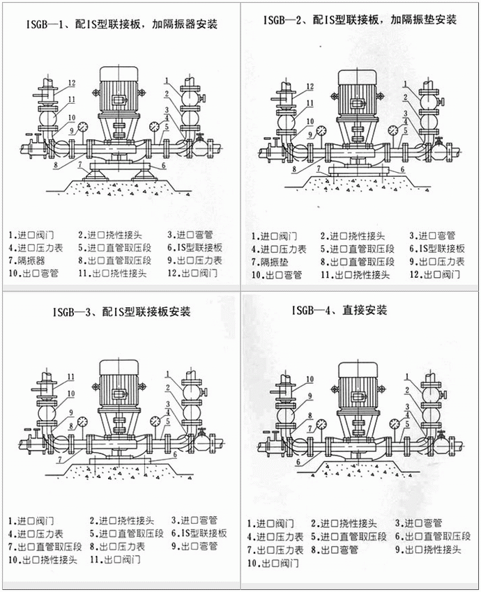 ISGB型便拆立式管道離心泵安裝方式圖:
