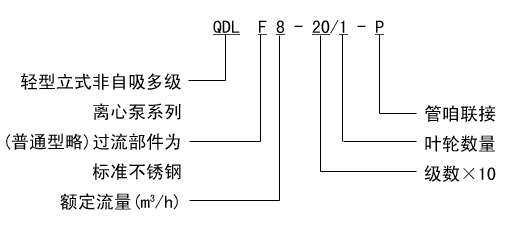 QDLF型立式不銹鋼多級泵型號說明: