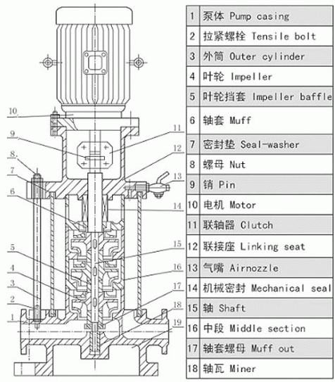 QDLF型立式不銹鋼多級泵是根據本公司ISG型立式離心泵及GDL型立式多級離心泵的優(yōu)點而設計的。在結構上采用了立式、分段形式,泵的吸入口與排出口設計在下方成一字形,并采用了先進的水力模型。泵的軸向力采用水力平衡方法解決,殘余軸向力由一個球軸承承受,因而運轉平穩(wěn)、低噪音、占地面積小、外型美觀、維修方便。QDLF型立式不銹鋼多級泵特別適合于高層建筑多臺泵并聯使用,以減少單泵機組配帶功率,簡化電控設備。適用于高低層建筑的住宅、醫(yī)院、旅館、百貨大樓、辦公大樓等的消防、生活供水以及空調機組循環(huán)、冷卻水輸送等。