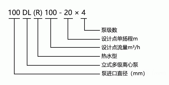 DL、DLR型立式多級(jí)泵型號(hào)說明: