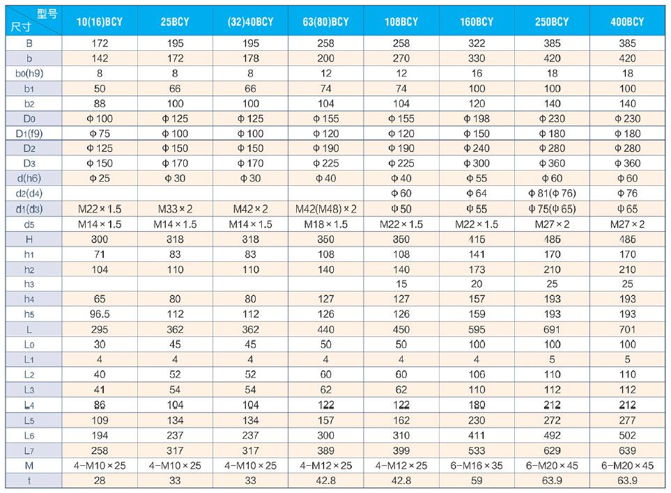 BCY14-1B型高壓軸向柱塞泵外形尺寸: