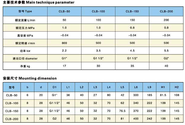 CLB瀝青保溫泵參數(shù)及安裝尺寸表: