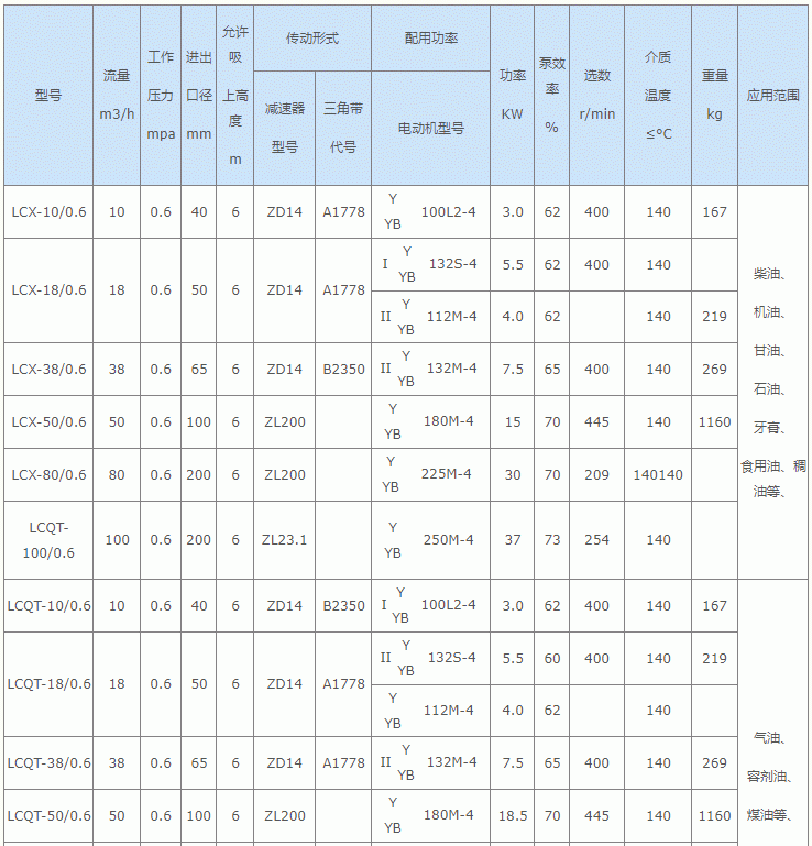 我公司生產(chǎn)的LC型羅茨油泵,分皮帶傳動和齒輪減速器驅(qū)動兩種形式。此泵具有:低轉(zhuǎn)數(shù)、效率高、體積小、流量大、消耗功率小、自吸能力強、不用引油、使用方便等特點??蓮V泛用于輸送石油及石油產(chǎn)品(汽油可換銅泵葉)和工廠輸送各種油類和液體。如原油、油漆、潤滑油、玻璃膠、油脂酸、牙膏和淡堿性(肥皂加工)液體等;食品加工可輸送各種液體,如豆?jié){、酵母、糖稀等。裝卸各種油槽車及油輪等速度快、效率高、使用方便,可以正反轉(zhuǎn)工作。