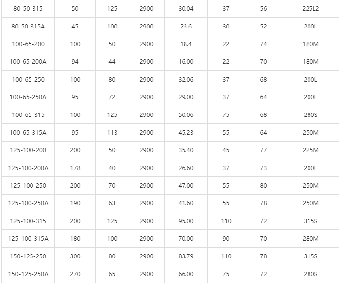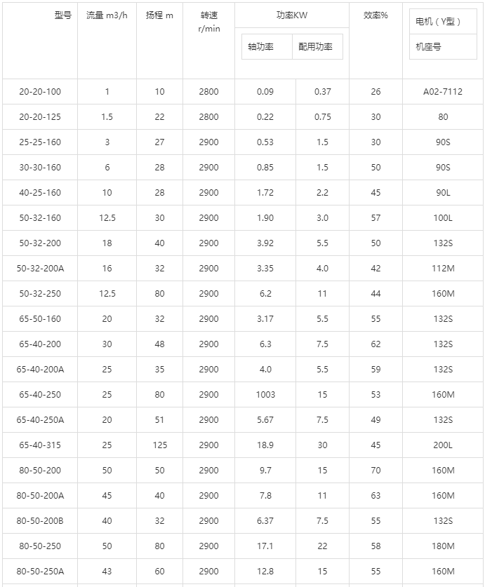 RY高溫導(dǎo)熱油泵性能參數(shù)表:
