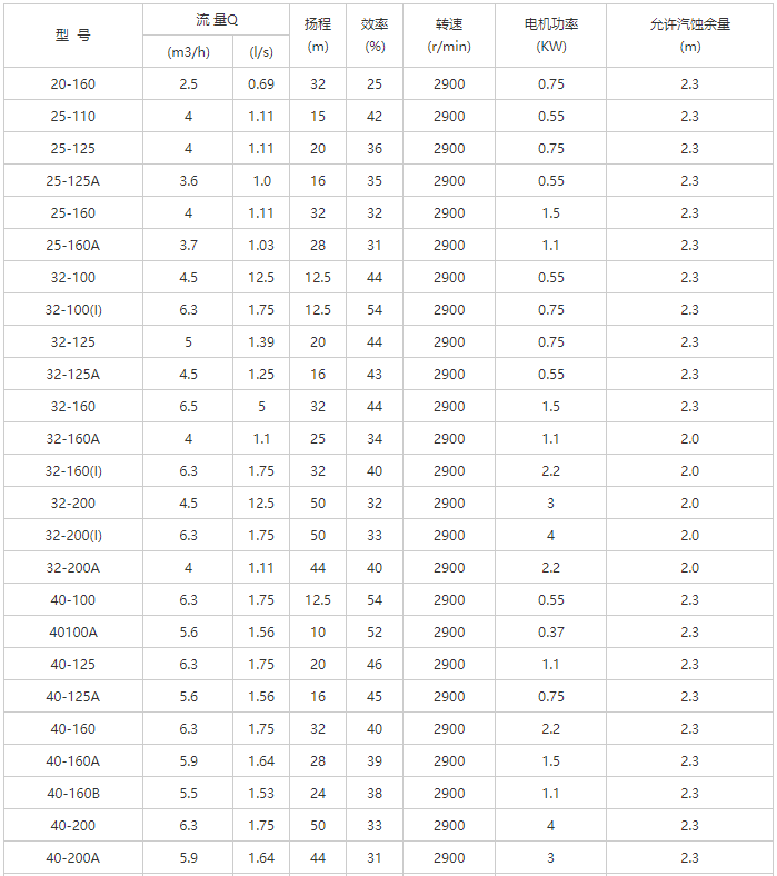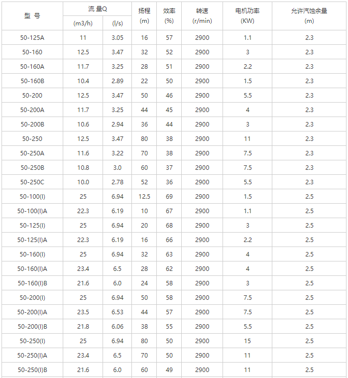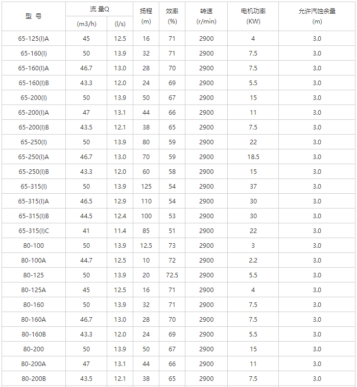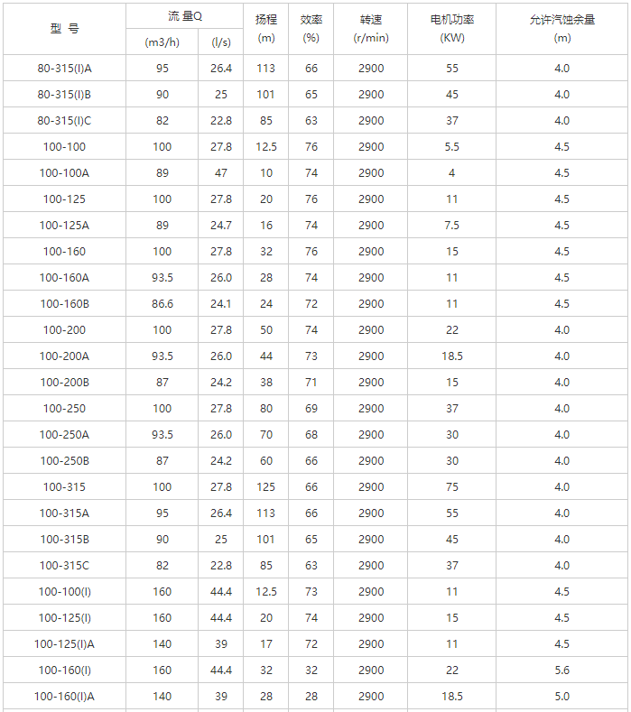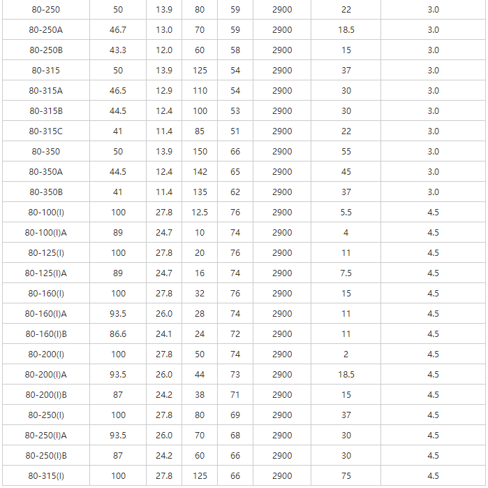 YG型管道離心油泵性能參數(shù)表-2