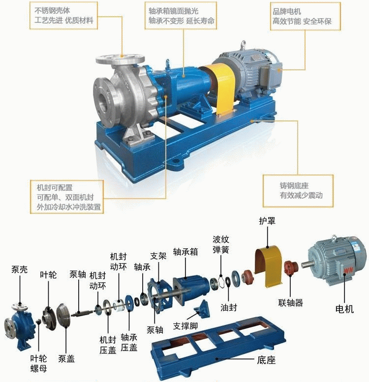 HJ型不銹鋼耐酸堿泵產(chǎn)品特點(diǎn):