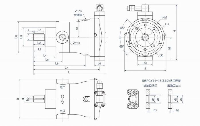 PCY14-1B恒壓變量軸向柱塞泵外形尺寸: