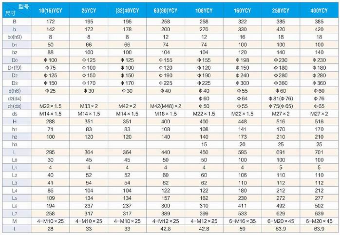 YCY14-1B壓力變量軸向柱塞泵外形尺寸表: